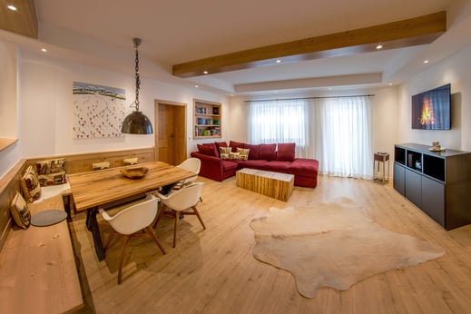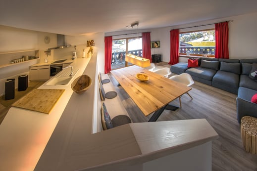 * Large living-dining room with open kitchen